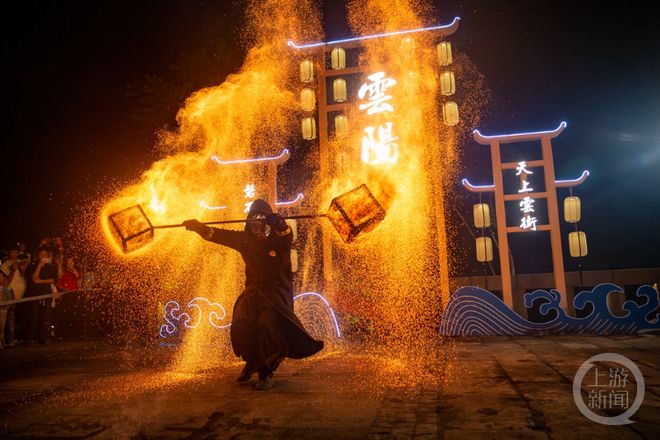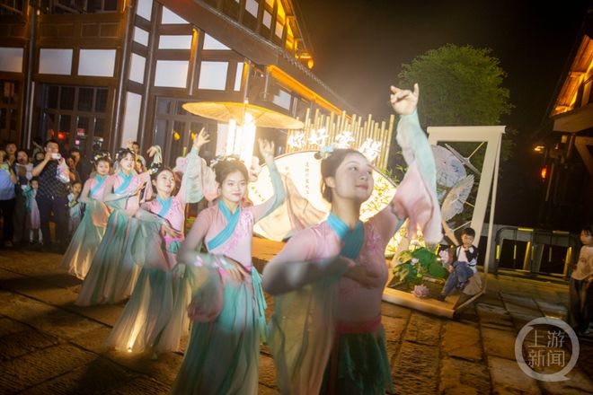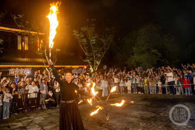 夜幕降临时,非遗火壶表演的烈焰划破夜空,川剧变脸的惊鸿一瞬,与年轻人自发的舞蹈快闪形成奇妙共振。