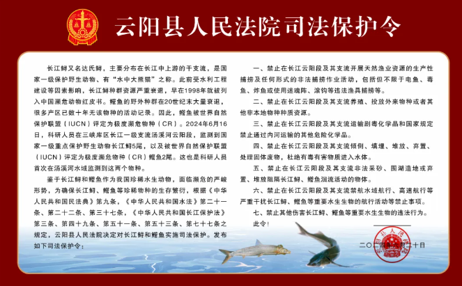 针对长江鲟、鳤鱼的《司法保护令》