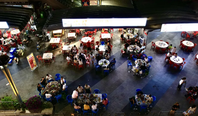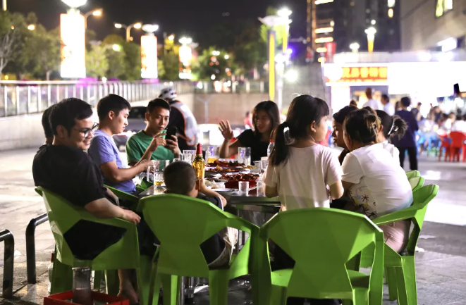 夜市在摊贩叫卖声、市民谈笑声、锅勺翻炒声中蓬勃开来