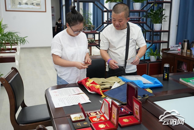 云阳网讯(通讯员 何竞嘉)一件件老物件,记录了老兵保家卫国的峥嵘岁月;一枚枚纪念章,满含对老兵的尊崇之情。5月29日,一场庄严的捐赠仪式在县退役军人事务局举行,高志坚同志郑重地捐赠出父亲高绍宽的1955式军服、《丰碑:志愿军部分将士名录》、抗日战争纪念章、抗美援朝出国作战纪念章、立功证书等红色革命物件。
