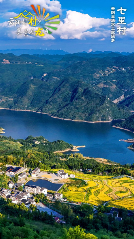 七里村位于云阳县清水土家族乡北部,北距云阳城区64.6公里,滨临清水湖,交通便利。该村平均海拔700米,户籍人口1281人、辖10个村民小组总户数383户。作为清水湖国家级“湖村振兴”示范项目核心区,七里村依托自身特色,构建起了“水田花宿”特色体系。农业产业上,水稻、油菜等传统作物与中药材石菖蒲形成立体种植;文化旅游上,七里村围绕清水湖建立建成了清水湖湖广观景台,并依托土家族文化底蕴,在村内设有“七里村小家园”节点景点与研学中心,将巴渝古韵与现代农旅深度融合打造成为全市知名的亲子游目的地。
