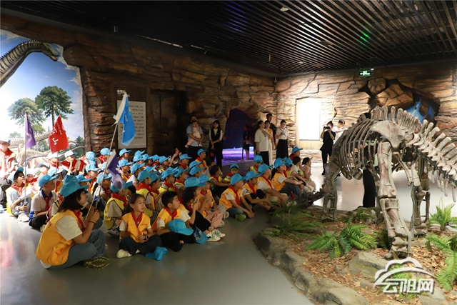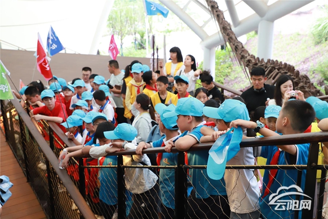 开营首日,孩子们首先来到云阳恐龙馆。一进展馆,他们就被馆内陈列的各类化石模型深深吸引。在研学老师的生动讲解下,孩子们仿佛穿越时空,回到了远古时代。他们了解到不同种类恐龙的生活习性,有的恐龙是群居动物,有的则喜欢独来独往;知晓了恐龙生存的复杂环境,从茂密的森林到广袤的草原,都有恐龙的踪迹;还明白了恐龙灭绝的多种可能原因,如小行星撞击地球、火山大规模喷发等。