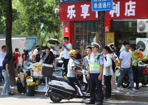 许多家长特意穿上寓意“旗开得胜”的旗袍