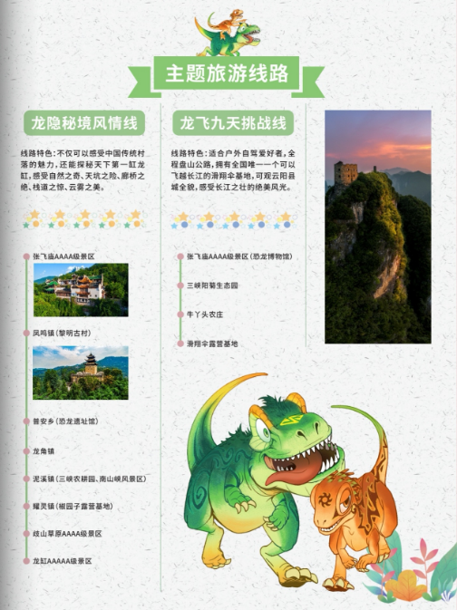 可享受龙缸景区,张飞庙景区,恐龙化石遗址馆