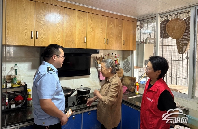宣讲活动后,工作人员对“孤老病残”重点对象进行入户走访,在南溪社区第三网格独居老人赵好珍家中,消防工作人员和社区网格员一道仔细检查厨房、卧室等用电用火重点区域,查看烟雾报警器待机状态,向老人科普安全用火、防火以及逃生知识。