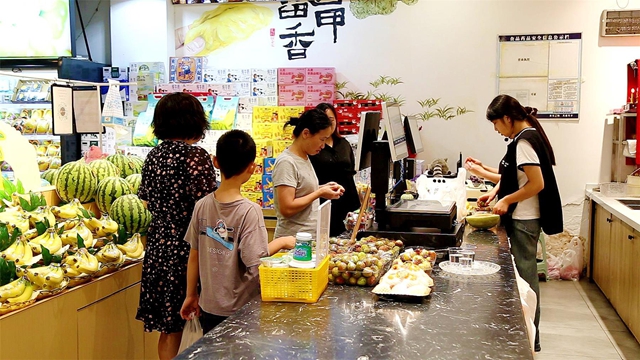 在水果供应方面,超市成为重要渠道。重百超市生鲜经理解维菊介绍,夏季是多数水果的丰收期,市场供应量大增,丰富的品类和充足的货源使得水果价格下跌。以山竹和荔枝为例,山竹价格从原先的15.8元/斤降至9.9元/斤,荔枝价格从12.9元/斤直降到6.98元/斤,榴莲、西瓜等热门水果也纷纷“降价促销”。价格的下降带来销量的显著增长,不少市民趁着实惠大量采购。