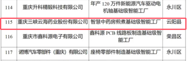 2025年重庆市数字化车间(基础级智能工厂)名单