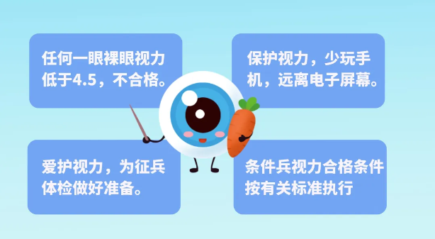 ◆任何一眼裸眼视力低于4.8,需进行矫正视力检查,任何一眼矫正视力低于4.8或矫正度数超过600度,不合格。