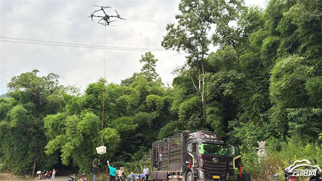 我县多山地,以往果品运输“上山难、下山更难”,不仅耗时费力,还易因颠簸损伤果实。今年,云安镇在黄桃主产区试点无人机运输,通过精准悬停、稳定吊运技术,解决了崎岖地形的运输痛点。目前,产业园里2台无人机轮流作业,日均运输黄桃超10吨,果实完好率提升至98%以上。