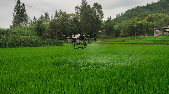 云阳网讯(通讯员 谢凤琴)近日,在路阳镇水稻高质高产示范区,无人机腾空而起,开启今夏大规模虫防统治作业。