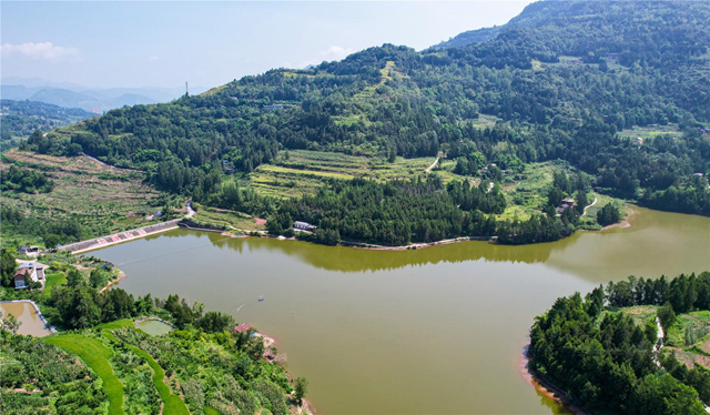 在凤鸣镇,连晴高温使得主要水源地和平水库水位明显下降。为保障凤鸣场镇及周边六个村近四万人的正常用水,当地及时启动应急预案,将农建水库作为应急水源,每日从中抽取约2000立方米水量补充供水。