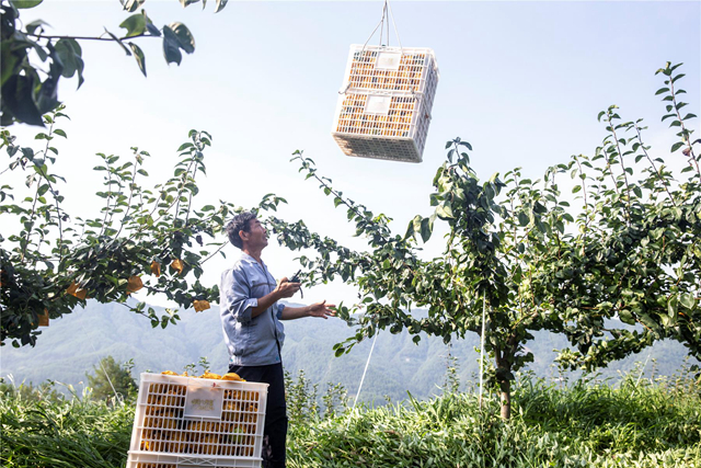 云阳网讯 (记者 刘兴敏 通讯员 周川杰)“前行5米,慢慢降落……”“起吊……”7月17日清晨,云阳县蔈草镇长岭社区的梨园里已是一派繁忙景象。吊运工人刘中秋手持对讲机熟练指挥,将挂钩稳稳地固定在装满雪梨的果筐上。