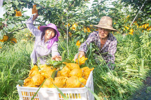 长岭社区地处中高山地带,昼夜温差大、土质疏松肥沃。自2016年起,社区充分利用缓坡冷砂地,陆续种植了翠冠梨、圆黄、黄金梨、长十郎等品种,面积达1500余亩。目前果园已全面进入盛产期,预计今年优质梨产量将突破50万斤。