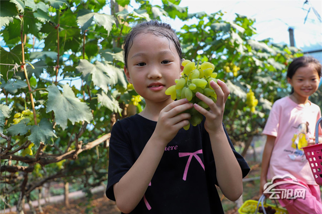 云阳网讯(记者 刘婷 吴迎花)盛夏七月,硕果盈枝,正是葡萄成熟上市的黄金季节。在盘龙街道的云杨葡萄采摘园,浓郁的葡萄清香扑鼻而来,令人心旷神怡。园内,不少游客穿梭在葡萄藤间,边采摘边品尝,尽情享受着田园采摘的乐趣。