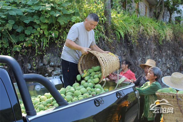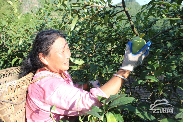 村民们背着背篓穿梭其间,指尖轻轻一拧,果子便落进筐里,“这果子金贵,得轻拿轻放,它是一味上好的药材,浑身都是宝呢!”正在采摘的刘大哥放下刚摘的一个硕大的药木瓜,细细说道:“药木瓜性温、味酸、归肝、脾经,主要功效是舒筋活络和胃化湿。药木瓜对常见的关节僵硬、活动不便,以及肩颈酸痛,都有一定的调理作用。”