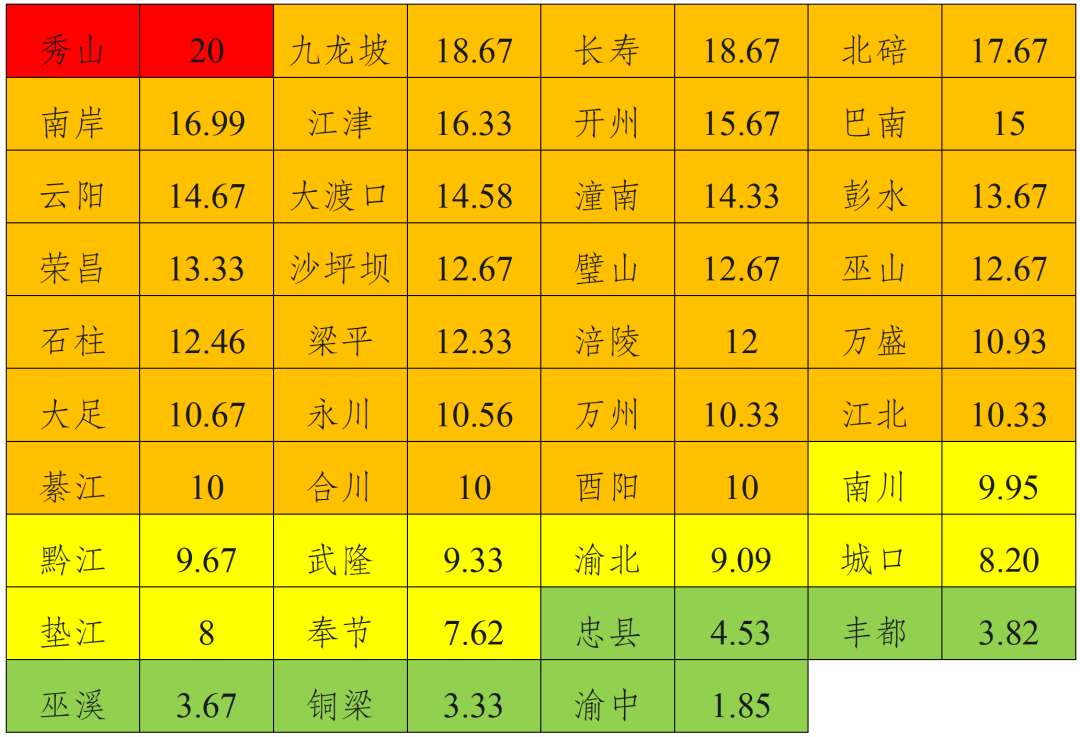 各区县布雷图指数请通过下面表格查询(从左到右,由高到低排序):