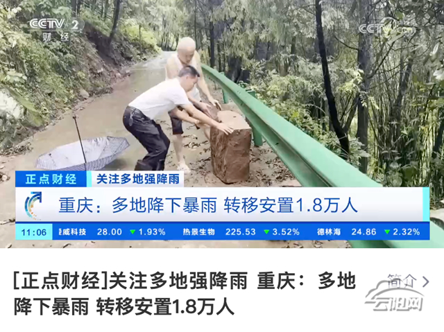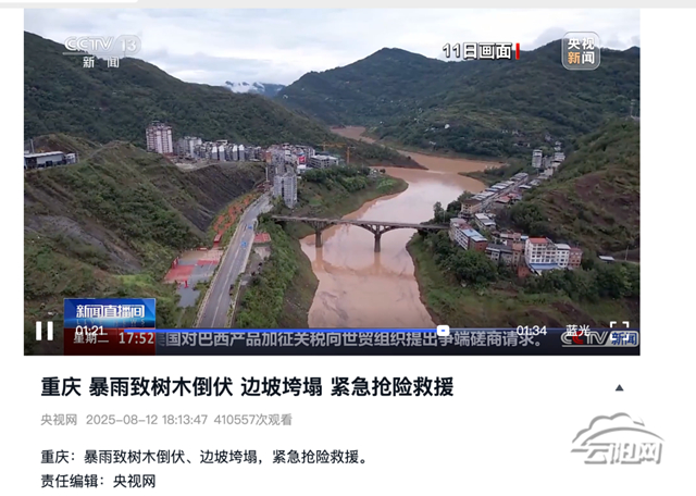 云阳境内普降大到暴雨,局部地区特大暴雨