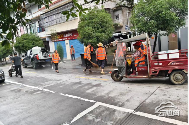 活动期间,全体参与人员严格按照分工,有序开展清扫工作:手持扫帚对路面垃圾进行集中清理,运用高压水枪对油污地面进行彻底冲洗,重点整治沿街乱堆乱放杂物。大家不畏高温酷暑,集中对商铺门前卫生死角、排水沟淤泥杂草等进行深度清理,同步向沿街商户宣传“门前三包”责任制政策,引导群众自觉参与环境卫生维护。