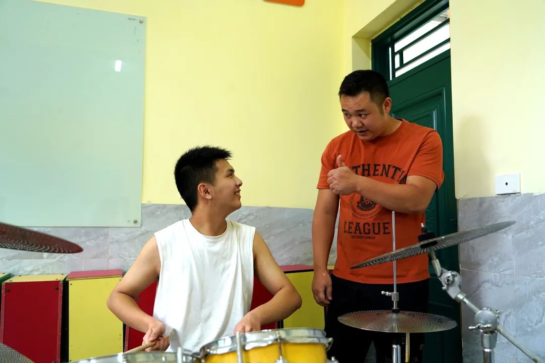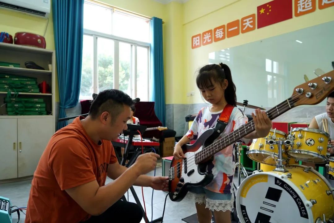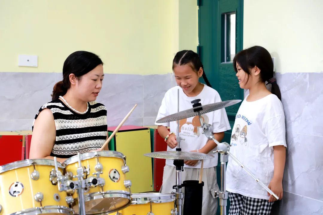 “能不能先教会我们的老师,再由老师去教学生?”学校校长怀揣着坚定的信念,一家家登门拜访,四处寻求帮助。最终,云阳博乐琴行被校长的诚意所打动,愿意公益支援。为了给孩子们铺就一条通往音乐世界的坦途,学校全体教职工毅然进行了一场“自我革命”。他们决定,首先要自己成为学生,虚心向机构培训老师学习架子鼓。在机构培训老师的悉心指导下,老师们刻苦学习,然后由他们再去教孩子们,将所学知识毫无保留地传授。