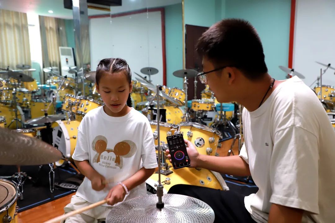 “坚持一分钟休息三分钟,加上之前进行的手指拉伸训练,每天先做完这一套训练才开始上课,训练基础节拍、歌曲的节奏等。”邓涵介绍。