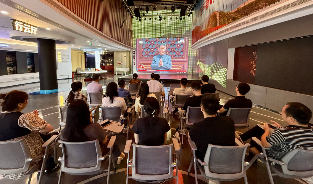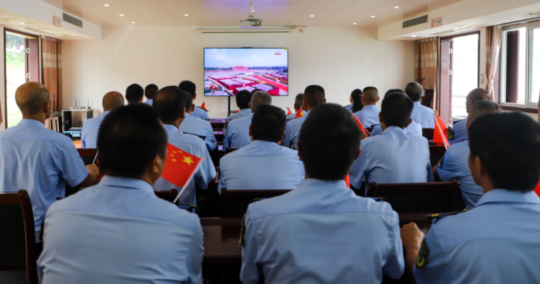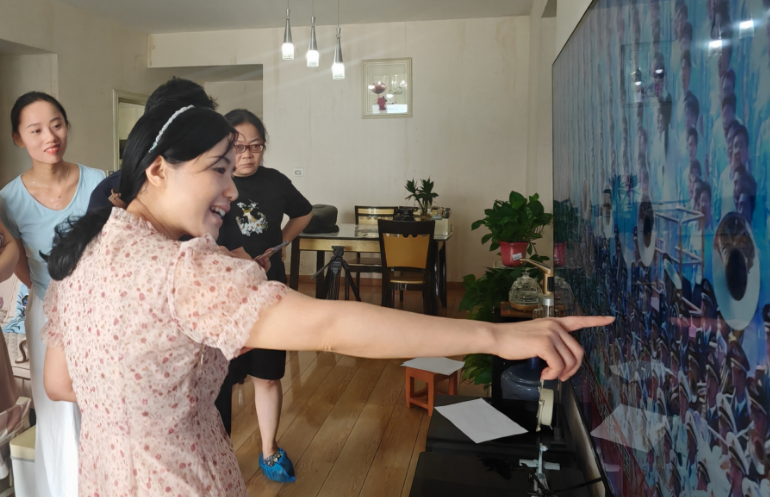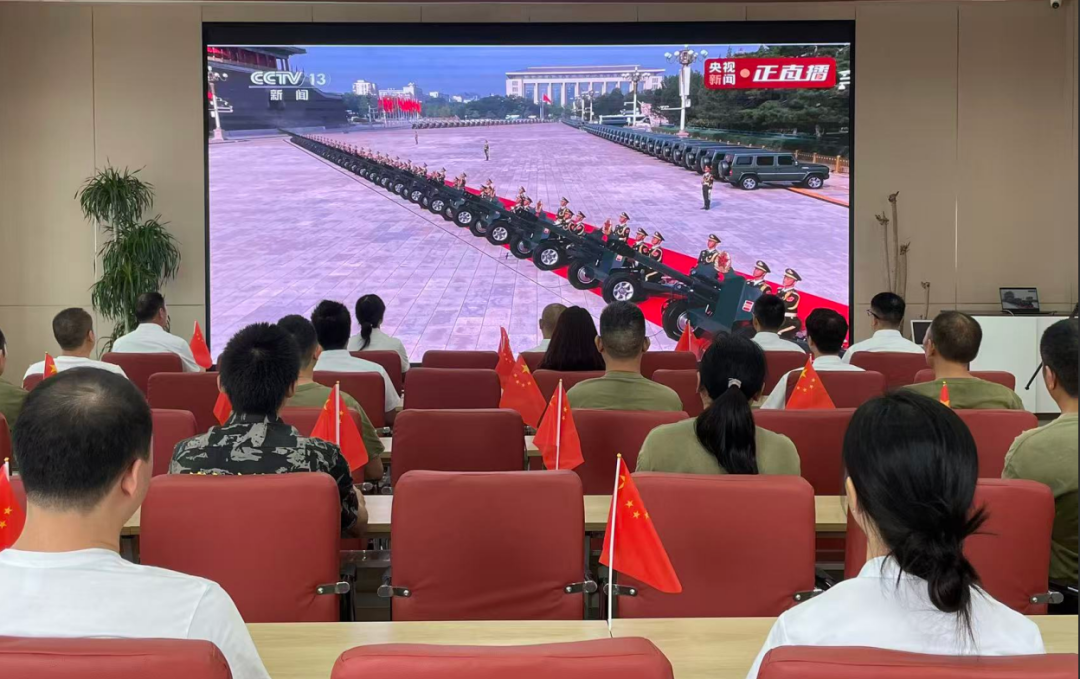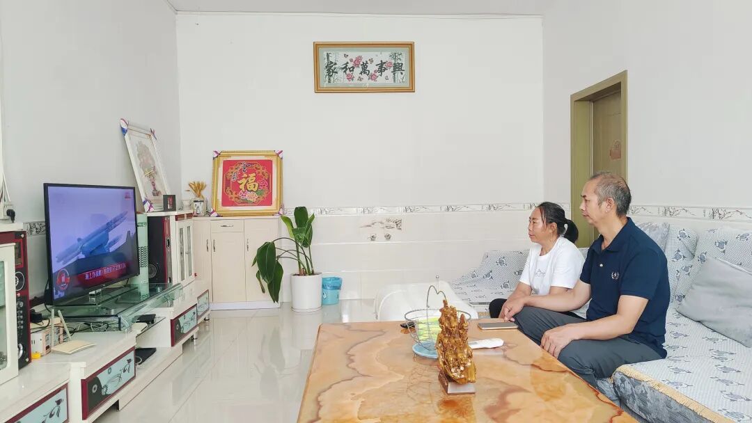 青龙街道现役军人朱文瀚家属收看阅兵式