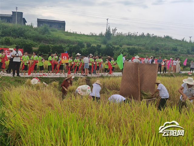 云阳网讯(实习记者 杨佳奇)9月5日,渠马镇数字乡村推广季嗨购渠马暨第五届传统搭谷比赛在丰收的稻田中火热举行。县政协副主席黄世忠出席并宣布比赛开幕。