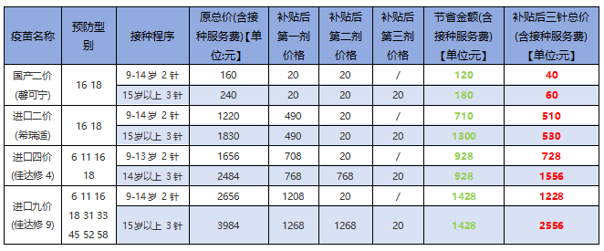 HPV疫苗的“价”代表疫苗覆盖的HPV病毒型别的数量,价数越高,代表疫苗预防HPV型别越多。家长可自主选择的HPV疫苗,包括二价、四价、九价HPV疫苗。