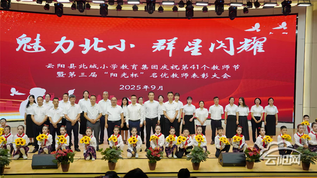 云阳网讯(记者 刘琴)近日,“魅力北小 群星闪耀”——北城小学教育集团庆祝第41个教师节暨第三届“阳光杯”名优教师表彰大会举办。集团五所学校教职员工、获奖教师家属、学生代表及特邀嘉宾等300余人齐聚一堂,共同见证这一荣耀时刻。