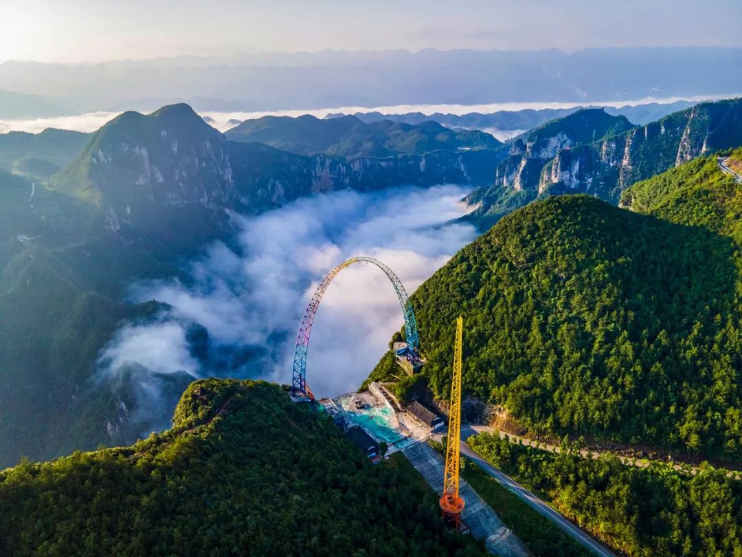云端廊桥垂直落差720多米,悬挑长度26.26米,是世界第一悬挑玻璃廊桥。