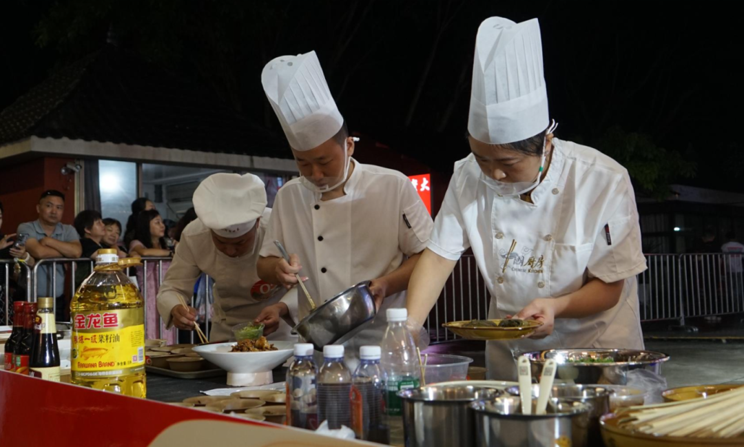 当晚,开州区烹饪协会、重庆市万州区三峡盛宴餐饮有限公司等县外参展企业,展示了牡丹灯影鱼片、孔雀迎宾、茶果子、仔姜鲜锅兔等特色菜品,让大家在互相交流中增进厨艺。
