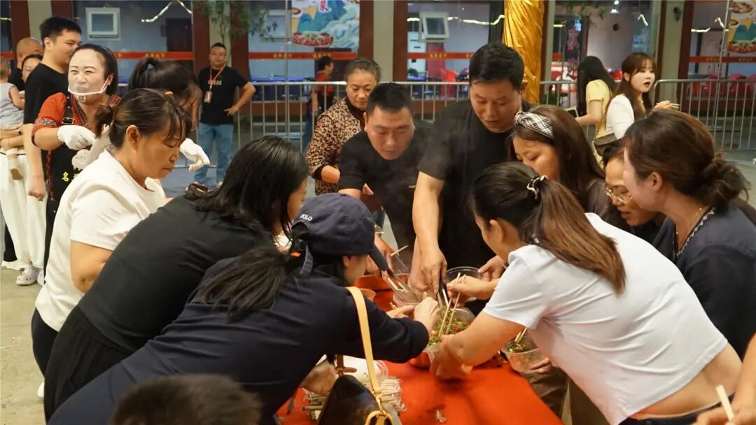 比赛结束后,现场随即开启美食品鉴环节。四十多道参赛菜品整齐摆放供观众免费品尝。观众们拿着餐盘逐一品尝,大河盐帮菜赢得一致好评,现场欢声笑语不断,烟火气与幸福感交织。