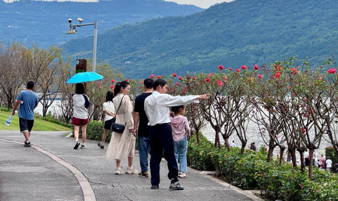波光粼粼的景致吸引众多游客漫步赏景