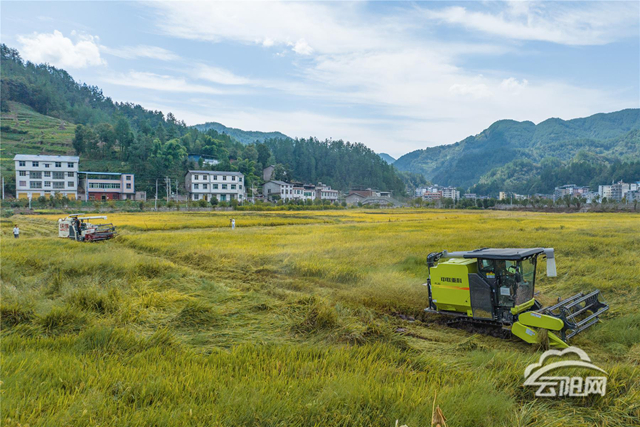 云阳网讯(记者 谭启云刘琴)秋高气爽,稻谷飘香。眼下,我县10万亩高山水稻进入收获期。当地抢抓农时组织农机开镰收割,田间地头,一派繁忙景象。
