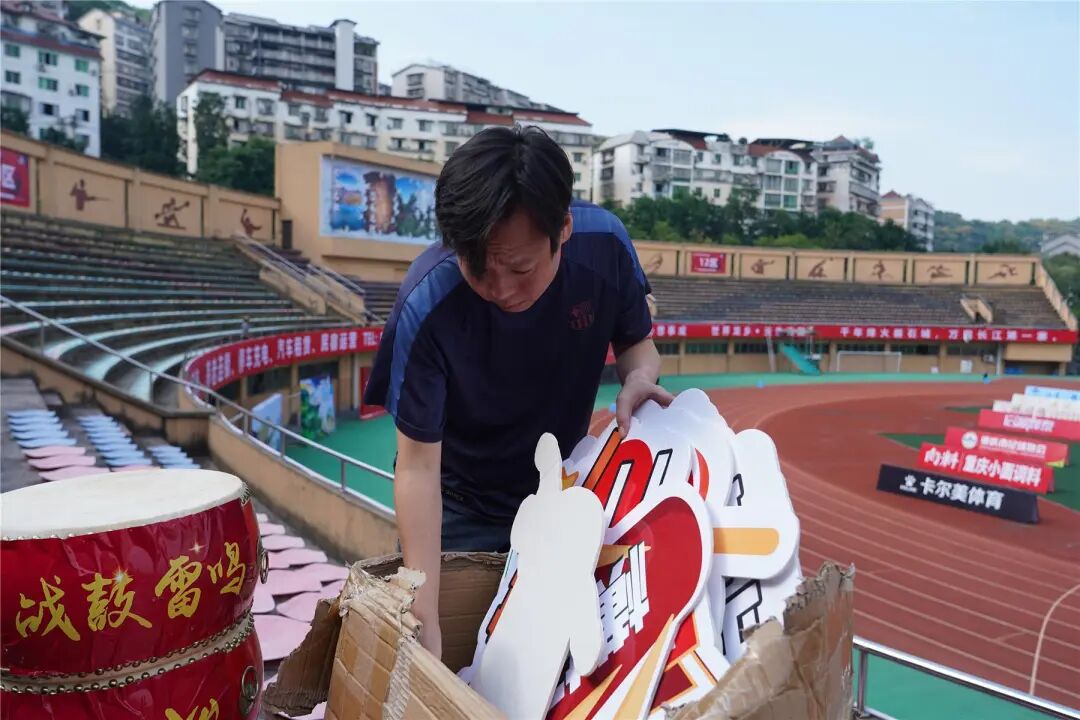 云阳恐龙队助威团正紧锣密鼓地做着各项准备工作