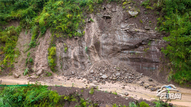 10月13日下午4点左右,记者在事发现场看到,滑落的土石混杂树木横亘路面,将双向车道完全掩埋。据耀灵镇相关部门初步测算,垮塌体总量约800立方米。险情发生后,当地综合行政执法大队工作人员立即在路段两端设置警戒线,实施24小时值守,禁止行人与车辆通行,并同步联系云阳县规划和自然资源局的驻守地质工程师赶赴现场勘测。