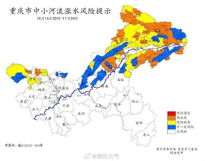 重庆市水利局和重庆市气象局2025年10月16日16时联合发布中小河流涨水风险提示: