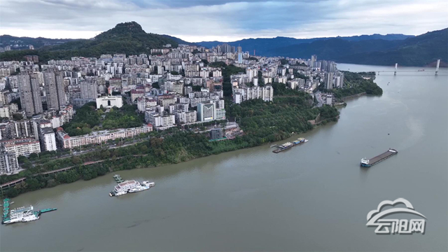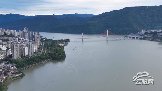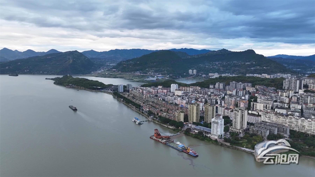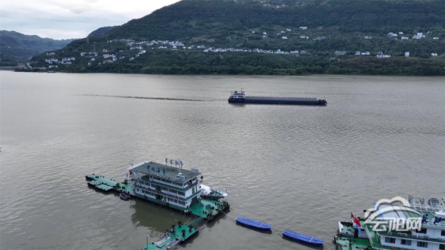 在长江云阳段,随着水位上涨,整个江面呈现出一片烟波浩渺、宽阔壮观的景象。