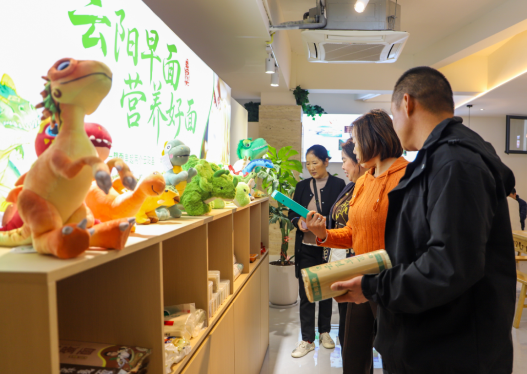 云阳早面此番进军重庆中心城区,显然做足了准备。280平方米的店面,不仅有统一的云阳早面门头装潢和Logo标识,还专门设置了产品展示区。来自云阳当地的面食、调料、农特产品琳琅满目,更有恐龙“龙宝”和“乖妹”等云阳特色文创产品点缀其间,讲述着云阳作为“中国面食美食地标城市”的故事。