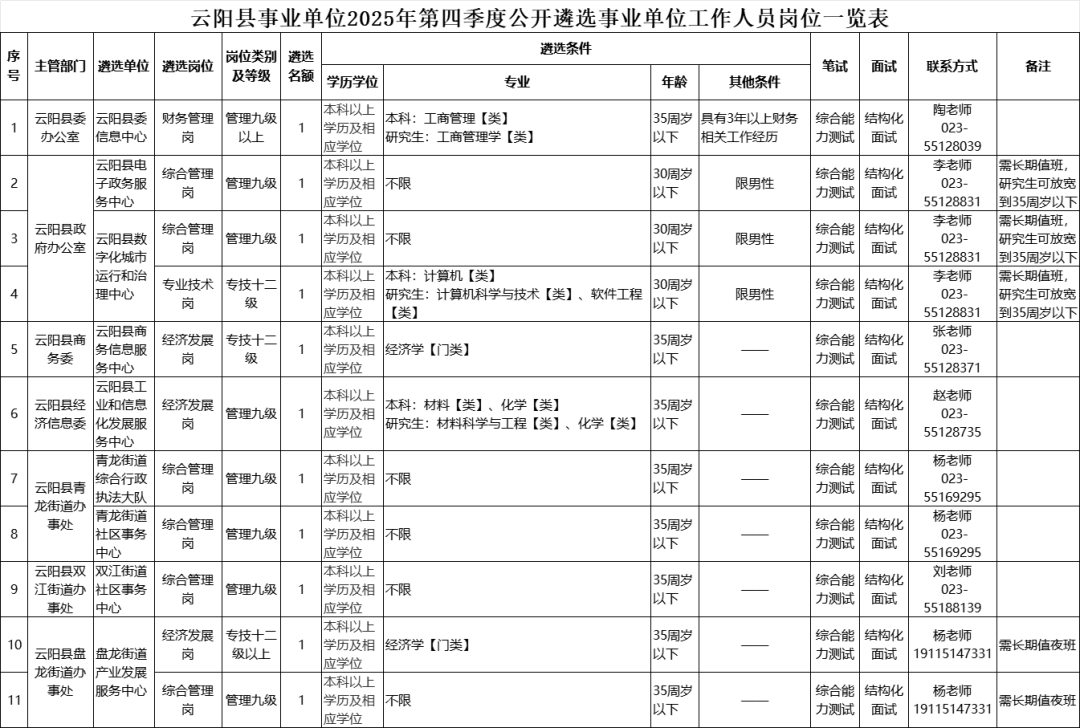 本次公开遴选事业单位工作人员11名。具体单位、岗位点击下图查看详情↓↓