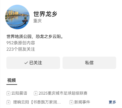 世界龙乡、云阳微发布两个视频号
