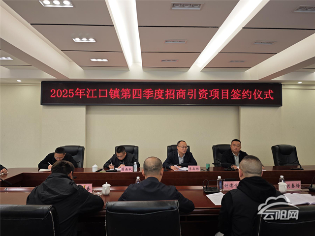 云阳网讯(通讯员邓洁 吴长江)11月5日,江口镇人民政府三楼中型会议室内,2025年第四季度招商引资项目签约仪式隆重举行。镇党委书记李森林、副镇长向国华、统战政法委员蒲云秋等党政领导,签约企业代表共10余人参加,现场完成1个重点项目签约,总投资额达1560万元,聚焦木制品加工领域。