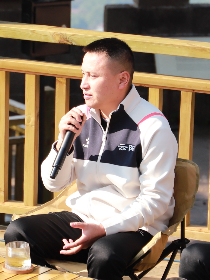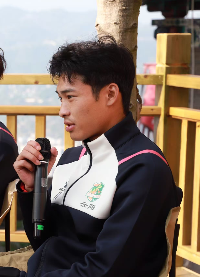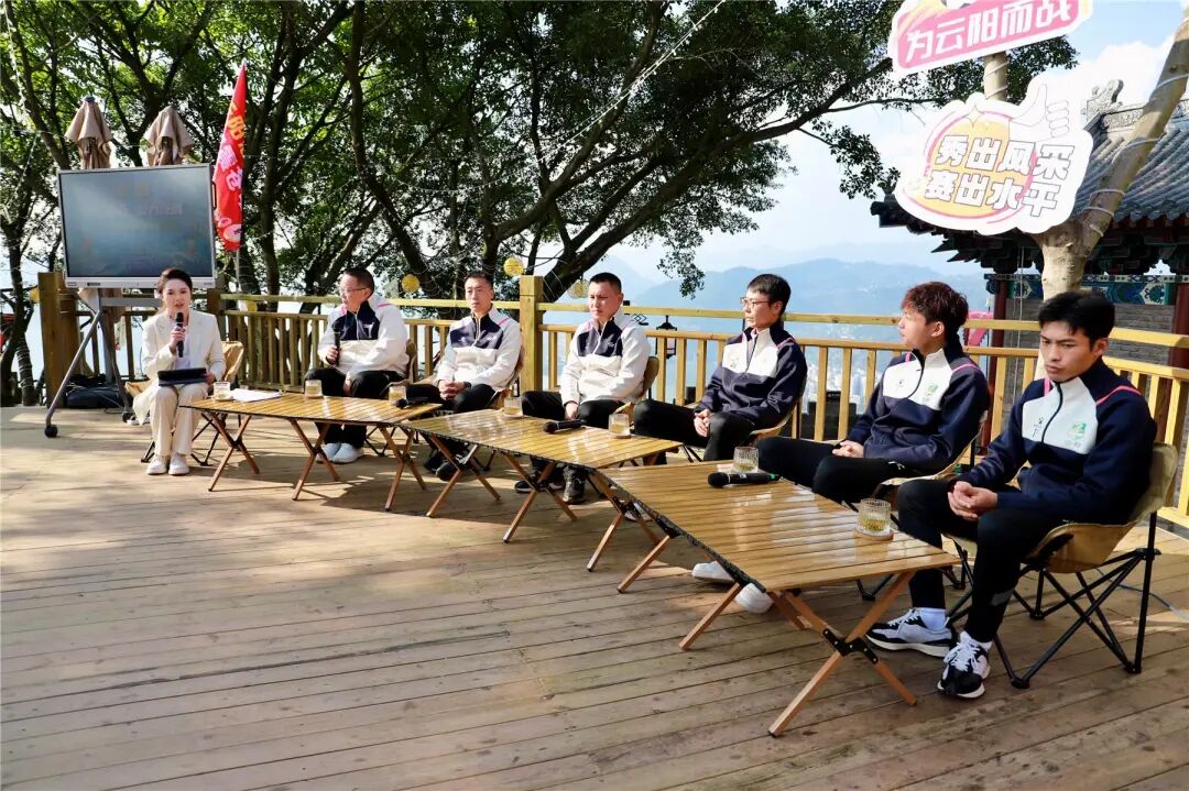 球队访谈环节,球队教练组刘畅、杨焕、史良与球员代表刘东霖、胡磊、杨尚鑫登场,现场响起阵阵掌声。他们分享了球队团结拼搏、为云阳而战的动人故事,生动展现了“磐石精神”的内核。