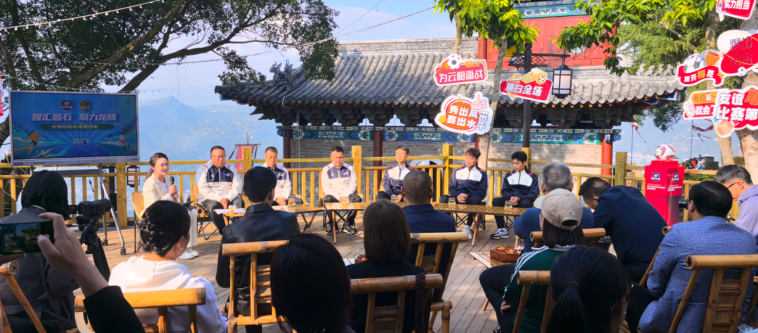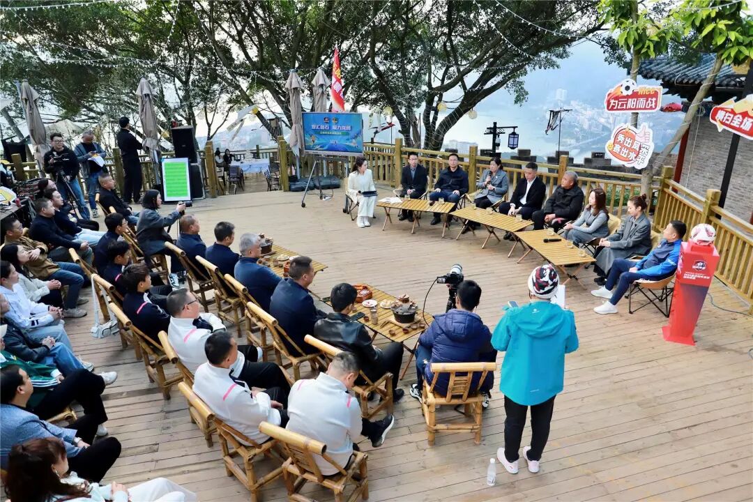 今天我们为云阳恐龙队加油,明天谁为云阳而战?在“龙腾展望”环节,县教委德体艺科负责人胡波、县文旅委体育科负责人王万华、重庆幼儿师专体育学院副院长黄涛、县初四中党总支副书记胡磊、县民德小学党支部副书记方平、县紫金小学副校长陈健、云阳双江中学校体卫艺处副主任刘颖和县足球协会秘书长、重庆龙极奥泰体育青训负责人管若帆等来自教育系统和足球青训领域的代表齐聚访谈区。