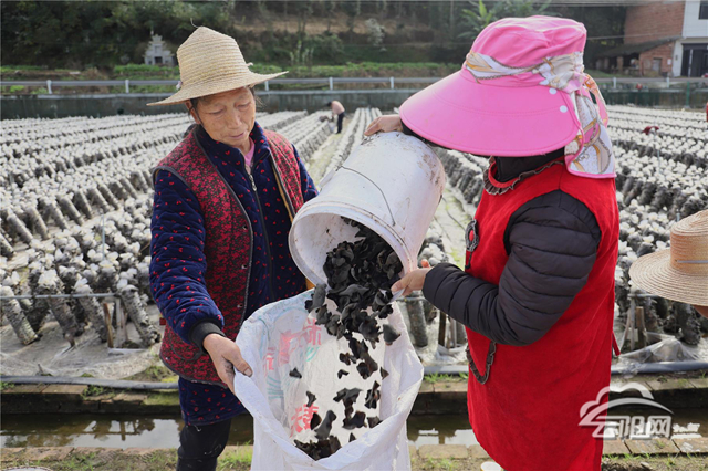 正在采摘的桑坪社区居民陈孝梅告诉记者:“今年木耳长得厚实,行情也好。我动作快时一天能采收鲜木耳约500斤,一天可收入100元。在家门口干活,活不重,收入也不错,心里很踏实。”