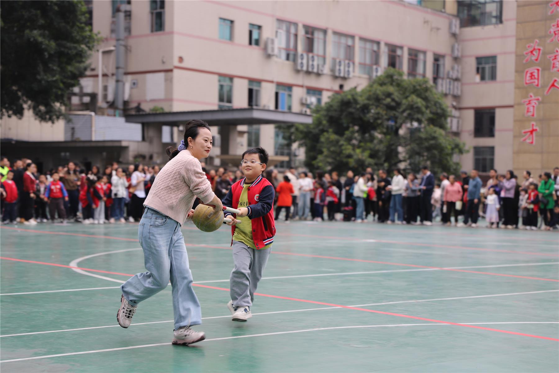协作运球见真情 家校同心育新苗