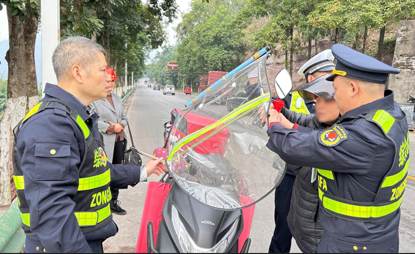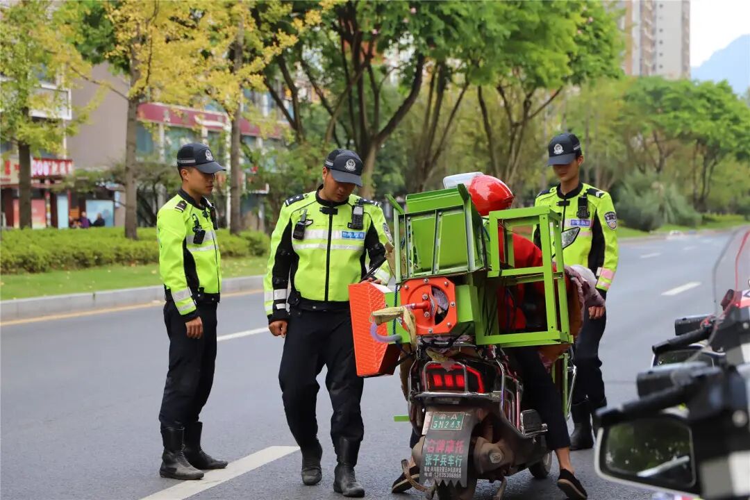 做到“有牌证、戴头盔、不加装、不超员、靠右行”