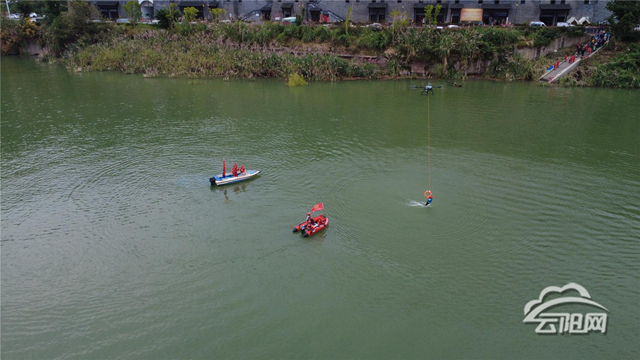 在水域搜救演练环节,演练模拟了人员意外落水险情。救援队立即出动冲锋舟,同时操控无人机快速飞抵落水点上方,精准悬停并空投救生设备,成功将“被困人员”转移至安全区域。无人机与水面救援力量的高效协同,充分展现了现代化科技在应急救援中的高效应用。随后,医疗救护组迅速上前,沉着规范地演示了心肺复苏等急救技能。