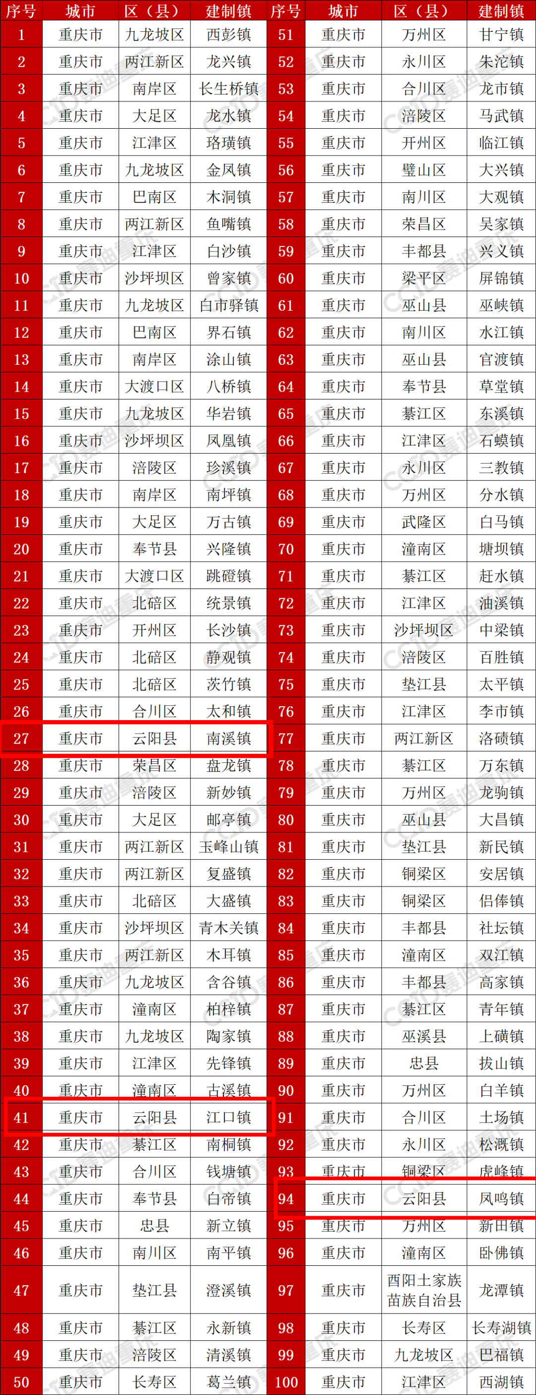 云阳县南溪镇、江口镇、凤鸣镇上榜