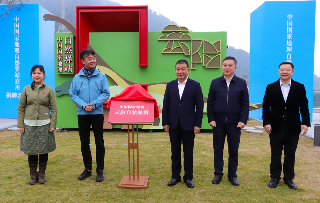 李栓科、陈道彬为中国国家地理自然驿站揭牌。