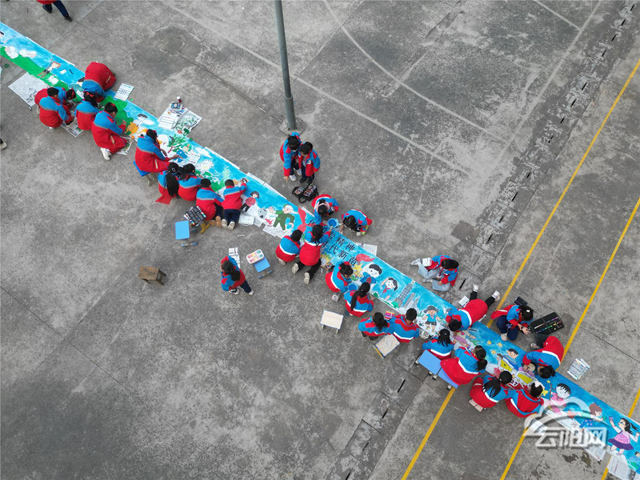 除了精彩的文艺展演,百名师生共同描绘的百米红岩长卷成为现场另一大亮点。孩子们手持画笔、齐心协力围聚长卷两侧,用鲜艳的色彩勾勒英雄事迹、用童真笔触还原红色记忆,“小英雄雨来”“王二小”等经典形象在笔尖下跃然呈现。在一笔一画的协作中,孩子们直观触摸历史温度、深刻感悟英雄精神,让勇敢、担当、忠诚等珍贵品质变得可感可学、入脑入心。